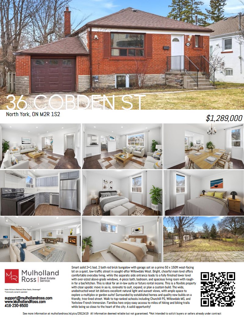 Smart solid 2+1 bed, 2 bath red brick bungalow with garage set on a prime 50 x 150ft west-facing lot on a quiet, low-traffic street in sought-after Willowdale West. Bright, cheerful main level offers comfortable everyday living, while the separate side entrance leads to a fully finished lower level with over-sized above-grade windows, 4-piece bath, bedroom, and spacious living room with rough-in for a bar/kitchen. This is ideal for an in-law suite or future rental income. This is a flexible property with clear upside: move in as-is, renovate to suit, expand, or plan a custom build. The wide, unobstructed west lot delivers excellent natural light and sunset views, with ample space to explore a multiplex or garden suite! Surrounded by established homes and quality new builds on a friendly, tree-lined street. Walk to top-ranked schools including Churchill PS, Willowdale MS, and Yorkview French Immersion. Families here enjoy easy access to miles of hiking and biking trails while being so close to the heart of the city. A solid opportunity!